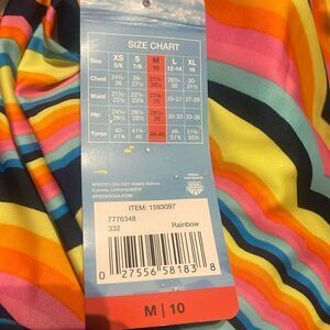 #17 Speedo youth bathing suit blue, orange, pink Medium 10 1 piece NWT Stripes