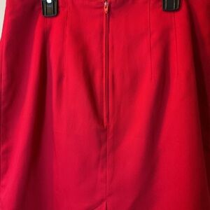 This vibrant red mini skirt features an asymmetrical A-line design, perfect for making a statement at work or cocktail events. Its bold color and unique style ensure you stand out while maintaining a professional look. The skirt's structured fabric adds a touch of sophistication to any outfit.