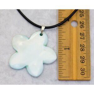 This is a 17 inch flower pendant necklace made of Mother of pearl.