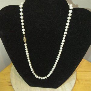 17 inch strand Genuine pearls newly restrung gold filled safety clasp pristine
