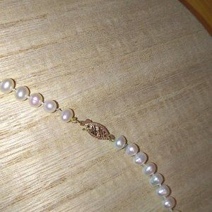 17 inch Genuine pearls newly restrung gold filled safety clasp pristine. The cost to restring was $76! See close up pictured of these gorgeous soft pink cast pearls. Price is firm. Sale is final.