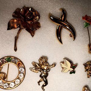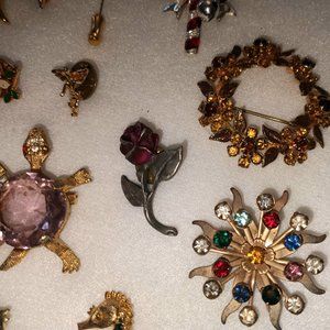 Lot of 17 vintage pins, turtles, butterflies, flowers... all complete