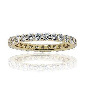 Stunning as a wedding or anniversary band, this 14K yellow gold style shimmers with a thoughtful 1.70 Ct. tw. (total carat weight). Prong-set round diamonds that completely surround the band. This exquisite style is lovely alone or paired with her diamond engagement ring. Buffed to a brilliant luster, this ring is a beautiful reminder of your timeless romance. Color/Clarity G-H/VS2-SI1. Size is 7 3/4. Also available in 14K White, Yellow and Rose Gold. For the size please contact us. Price may vary according to the ring size.
