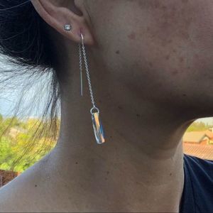 Handmade 20mm Swarovski Crystal Threader Earrings - AB (Aurora Borealis) - Column Shape