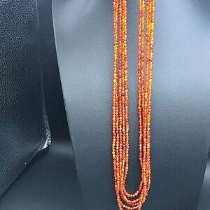 170.00 CTS NATURAL 5 STRAND ORANGE CARNELIAN ROUND FACETED BEADED NECKLACE BEADS
