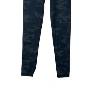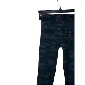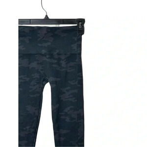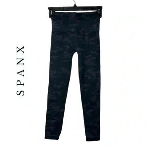 1708. SPANX CAMO SEAMLESS LEGGINGS SIZE XSMALL 7/8 LENGTH BLACK/GRAY IN COLOR