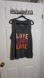 Charcoal tank top with bold 'Love' graphic in pink and orange.