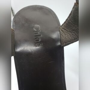 Chloe Womens Gray Leather Brown Wood Clog Heels Open Toe Strappy Size 40EU 9.5US