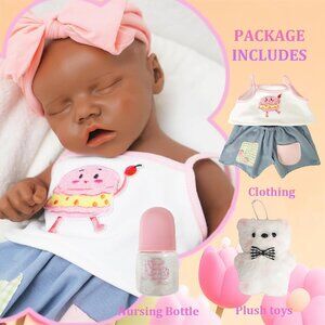17.2in Full Silicone dark Brown Reborn Baby Dolls BOY Lifelike Sleeping Doll