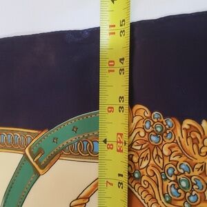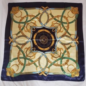 baroque scarf, chain print scarf, navy gold scarf, square scarf, vintage style scarf, silky polyester scarf, fashion scarf, elegant women’s scarf, baroque accessory, gift for her, new with tags scarf