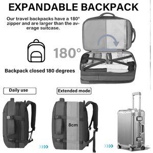 * EXPANDABLE & MULTI COMPARTMENT DESIGN: This oversized travel backpack is expandable, unzip the side zippers for 40L of storage space, one travel backpack is equivalent to a 20” suitcase for short 2-3 day trips or business trips. The backpack has 3 main large compartments and 10 zippered or inside pockets for 17.3” laptop, tablet camera and other electronics, clothes, toiletries, pens, wallet and more to keep your belongings organized and easier to find.