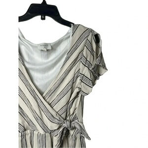 1744. EVERLY SHORT SLEEVE ROMPER STRIPES PATTERN TIE IN FRONT SIZE LARGE CREAM