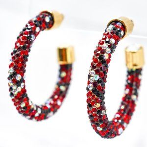 1.75" Black/Red/AB Pave Wrap Rhinestone Hoops (B)