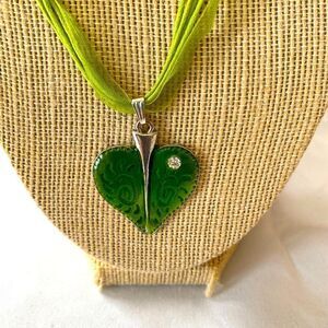 Green ribbon heart pendant choker Y2K style. #Ribbon #Green #Heart #Choker #Y2K