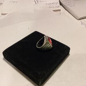 1757 Mens Silver Red Crystal Stone Ring Promise Vintage Statement Big Rectangle