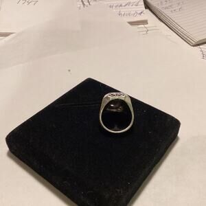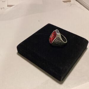 Mens Silver Red Crystal Stone Ring Promise Vintage Statement Big Rectangle