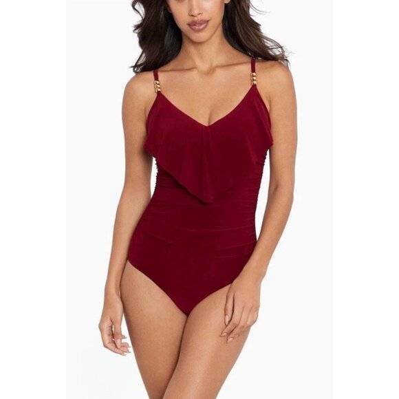 $176 Miraclesuit Solid Isabel One 1 Piece Women's Maroon Red Swimsuit Swim Suit