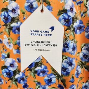 1764 Golf Polo Shirt XL Orange Blue All Over Print Choice Bloom Floral Honey NWT