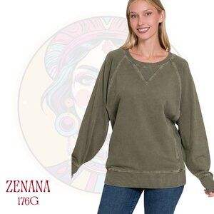176G ZENANA Olive Green Cotton French Terry Pullover Sweatshirt