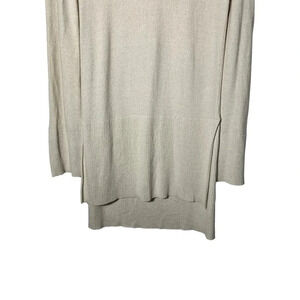 DETAILS: LONG SLEEVE SWEATER; THERE ARE SLITS AT WRIST IN SLEEVE; CRISS CROSS AT NECKLINE; KNITTED; HIGH LOW BOTTOM HEM; SLITS AT SIDE OF BOTTOM HEM; RIBBED MATERIAL; LIGHTWEIGHT