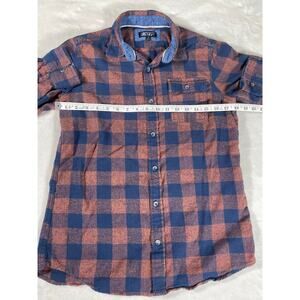 1775 Orange Navy Buffalo Plaid Flannel Shirt Sz Small