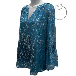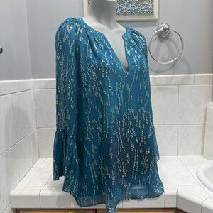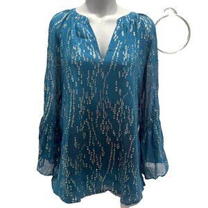 $178 NEW Lilly Pulitzer MATILDA SILK TOP Inky Tidal FISH GOLD Clip Chiffon M