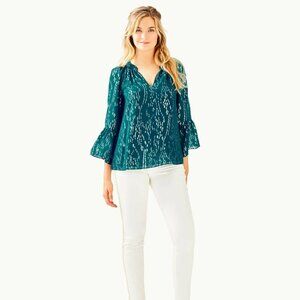 Lilly Pulitzer MATILDA SILK TOP Inky Tidal Fish Clip Chiffon