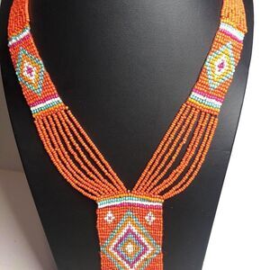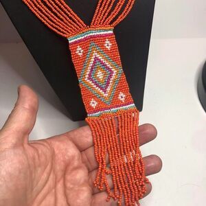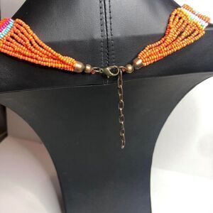 1795 Beautiful beaded orange multi strand boho fringe necklace 26-29"