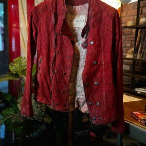 $1798 GIORGIO BRATO Red Leather Motorcycle Jacket in sz.52 (US M)