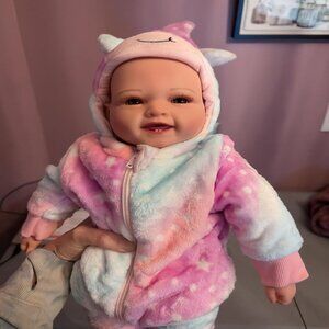 * Irresistibly Cute and Soft: With its endearing smile and poseable limbs, this baby doll for toddler is guaranteed to capture your heart. Her head is made of premium vinyl materials with a cloth body and limbs, soft to the touch, ensuring hours of cuddly fun for your little one. Plus, its durable construction means it can withstand all the love and playtime your child can give