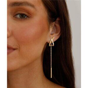 #GoldEarrings #ThreaderEarrings #DangleEarrings #MinimalistJewelry #XHoopEarrings #LightweightEarrings #NonTarnish #GiftForHer #ChicStyle