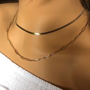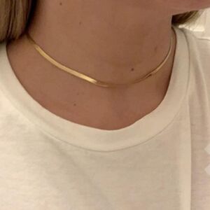 Superb quality 14k gold plated dainty flat snake/herringbone necklace.