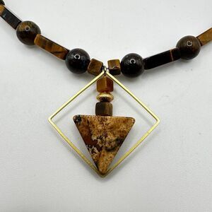 17" Revived Tiger's Eye, Picture Jasper, and Azurite beaded necklace!