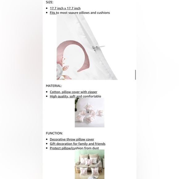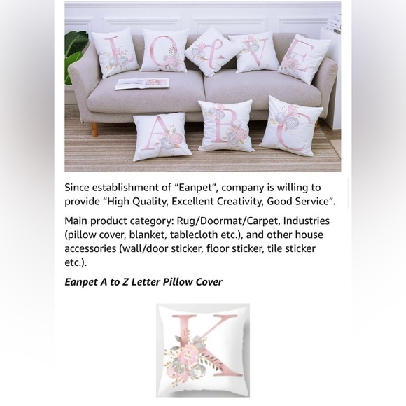 • Design: There is a capital letter "A-Z" surrounded by flowers with pure white background, the print is only on one side. Delicate invisible zipper was designed to meet an elegant look and refill pillow easily.