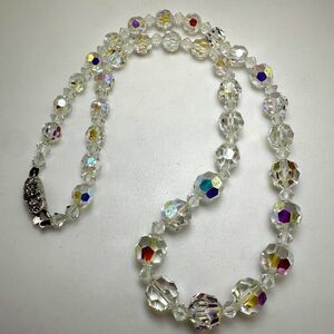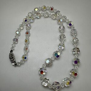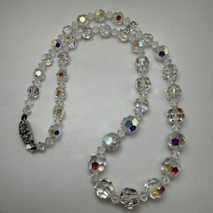18" All Aurora Borealis crystal beaded necklace with vintage clasp!