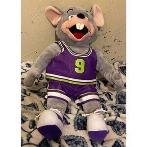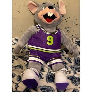 Cute Chuck E. Cheese plush mouse 18” with basketball jersey outfit on #9