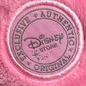 This collectible Disney Store Exlusive Minnie Mouse plush / stuffed animal wears a bright pink dress with white polka dots and a matching bow in her hair. Her shoes are pink with little bows, and her gloves and bloomers are white. Her bloomers allow her tail to poke out, which is adorable! She stands 18 Inches tall.