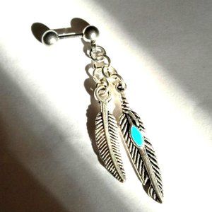 18 gauge surgical stainless steel helix barbell with 2 feathers charms.