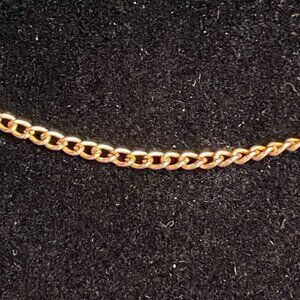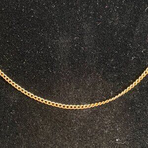 This is an 18-inch gold-tone chain necklace with a classic, elegant link pattern, suitable for a variety of occasions. The necklace features a smooth, polished surface and a durable clasp for secure fastening. It is lightweight, making it comfortable for everyday wear or pairing with pendants and charms.