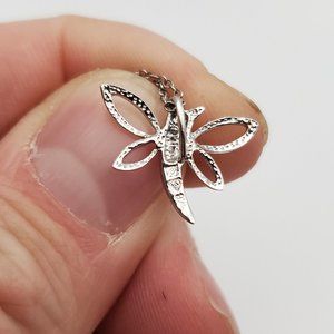 18 Inch 925 Sterling Silver Small Dragonfly Pendant Necklace