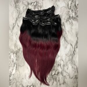wefts are double sewed. Easy to Install, Perfect to wear Daily. 100 grms Color: Black with Burgundy Red Ombre Style