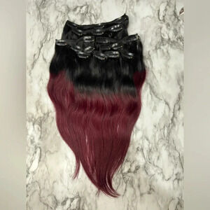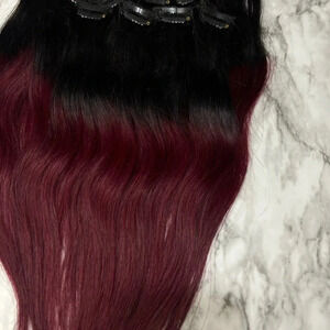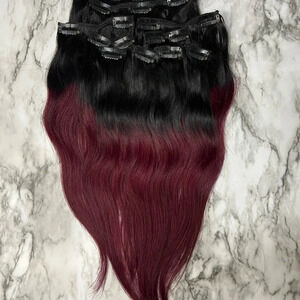18 Inch Clip in Hair Extensions Black Ombre Burgundy 100% Human hair