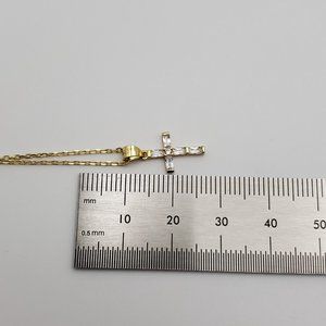 18 Inch Gold Plated 925 Sterling Silver Religious Tiny Cross CZ Necklace