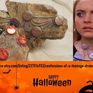 This listing is for an 18-inch Silver Coke Bottle Cap Necklace. Similar design to the necklace worn by Lindsay Lohan in the movie, "Confessions of a Teenage Drama Queen".