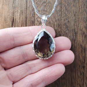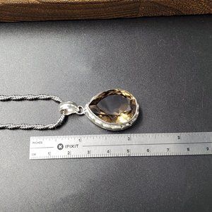 18 Inch Sterling Silver Large Smokey Quartz Gem Pendant Necklace