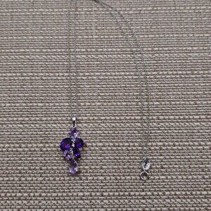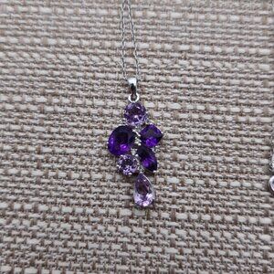 18 Inch Sterling Silver Various Amethyst Gems Pendant Necklace A2761