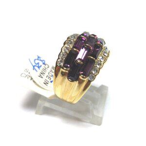 18 KGE Plated Purple CZ Cubic Zirconia Swarovski Crystal Baguette Ring.