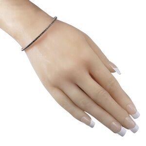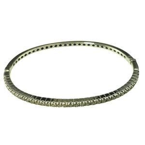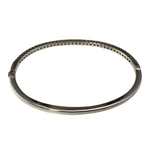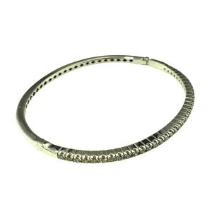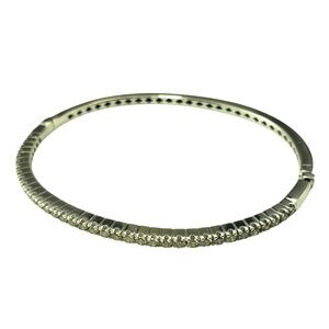 This 18K white gold bangle bracelet is a stunning fusion of elegance and modern luxury, featuring a row of 26 champagne diamonds that add a warm radiant glow. Hinged closure. Width: 3 mm.
