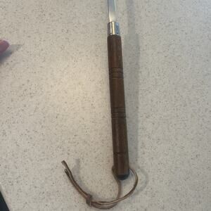 18" Long Wood Handle Barbecue Grill Spatula Meat Flipper With Leather Loop. Condition is Used.