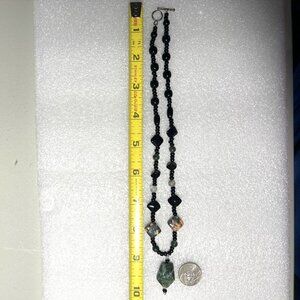18" Necklace Natural Stone Beads Pendant Silver Clasp Onyx Moss Agate Ocean Jasp